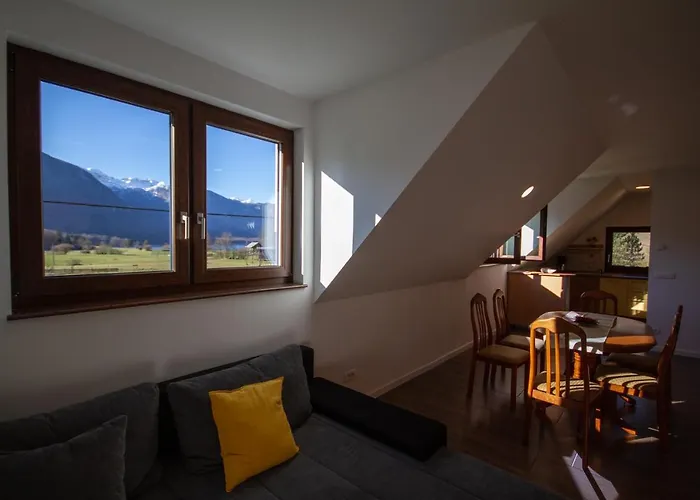 Weniger als 5 km vom Stadtzentrum von Bohinj entfernt, bietet das 1-Zimmer-Apartment Jezero Lake Bohinj Blick auf die Berge. Dieses Apartment bietet auch Parkplätze vor Ort.